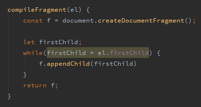 三、通过对以上 Web Api 接口的初步认知可以帮助我们更好的理解 Vue 在初始化视图时的大致逻辑到底如何, 以及弄明白在 compileFragment 函数中关于